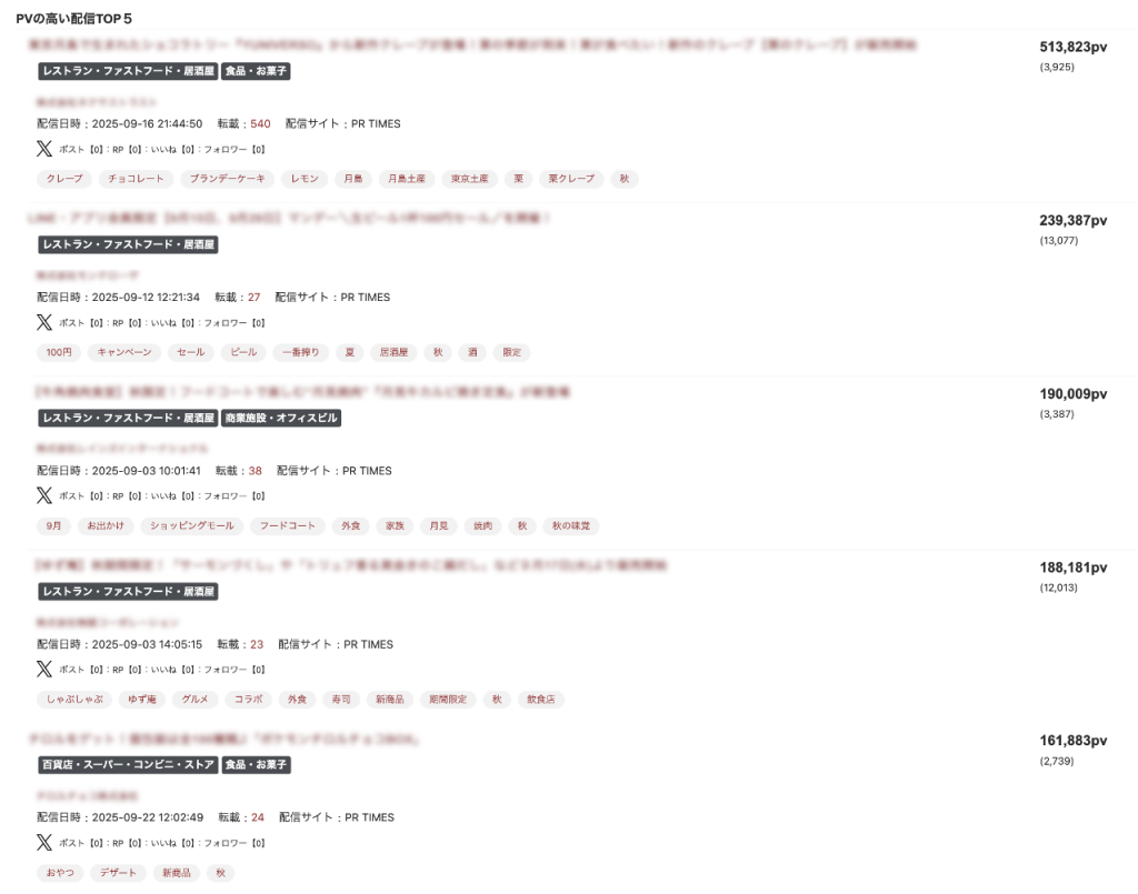 しかし高PVトップ5のリリースはすべて食品または飲食店のものでした。