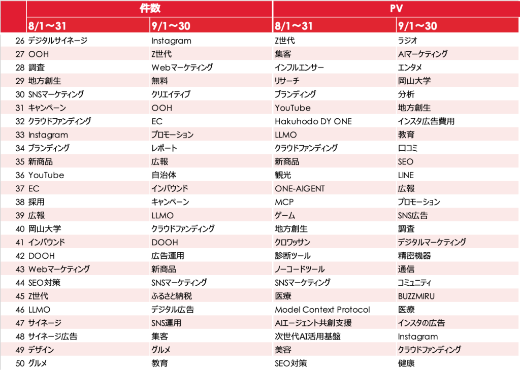 【広告・広報・マーケティング】プレスリリース キーワード 26位~50位